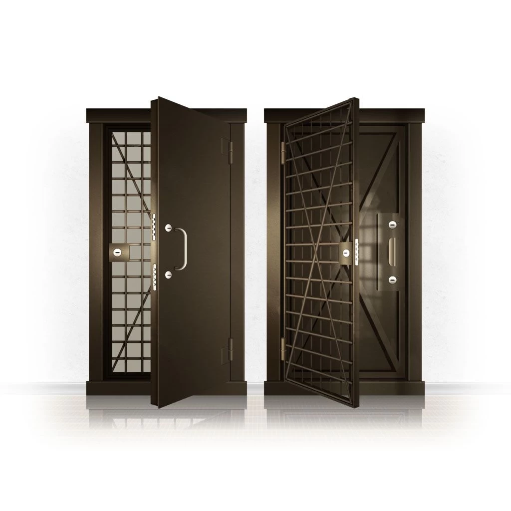 Металлические двери КХО и КХН представляют собой входные блоки, обладающие высоким уровнем взломостойкости и состоят из трех основных элементов: усиленного каркаса, сплошного металлического полотна и решетчатой двери. Дверной блок изготавливается из стального уголка 100*100 мм. Места крепления блока к стене цементируются и закрываются стальными наличниками шириной 40 мм. Крепеж заходит вглубь стены на 80 мм. В конструкции внешней створки монтируются ребра жесткости, для обшивки используется сталь толщиной не менее 3 мм. Внутренняя решетка изготавливается из прутка диаметром 16 мм. Размер ячеек решетки должен составлять не более 15 на 15 см. В точках пересечения прутья надежно приваривают друг к другу. В КХО и КХН необходимо поддерживать определенную температуру и влажность. Для этого внутреннее пространство глухой двери заполняется теплоизоляционным материалом, а по периметру двери приклеивается уплотнитель. Такие двери оборудуются замками с повышенным уровнем взломостойкости. Специализированные двери КХО и КХН в Спасске могут быть оснащены сигнализацией, в конструкции могут быть проушины для навесного замка и элементами для опечатывания. Если идет речь о двери в комнату хранения оружия, в створке оборудуется окно для выдачи оружия и спец. средств, которое накрывается стальной дверцей.